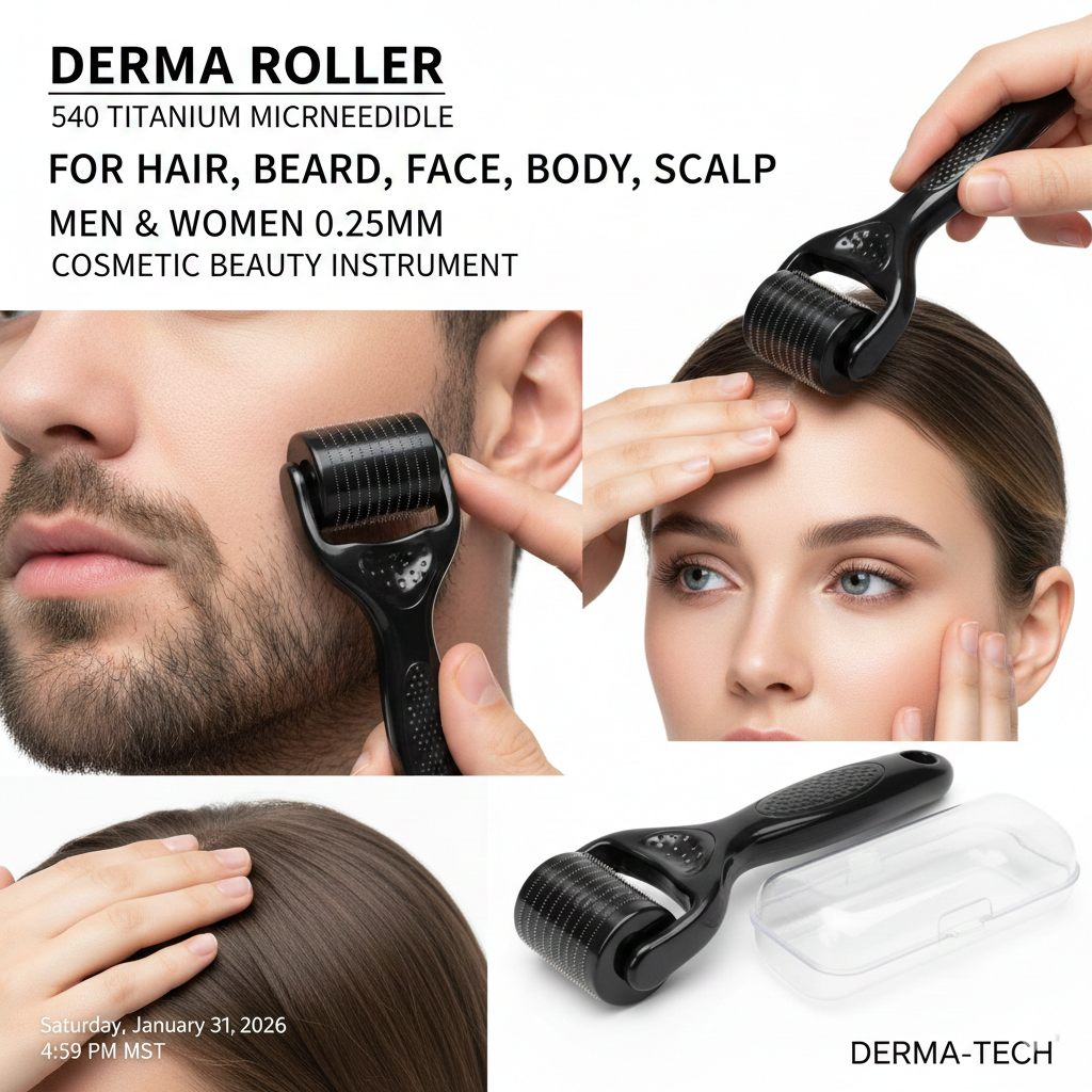 Derma Roller 0.25mm with 540 Titanium Microneedles for Face, Beard, Hair Growth & Skin Care – Microneedling Tool for Men & Women
